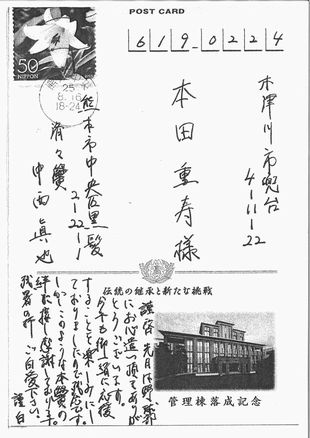 中西黌長礼状